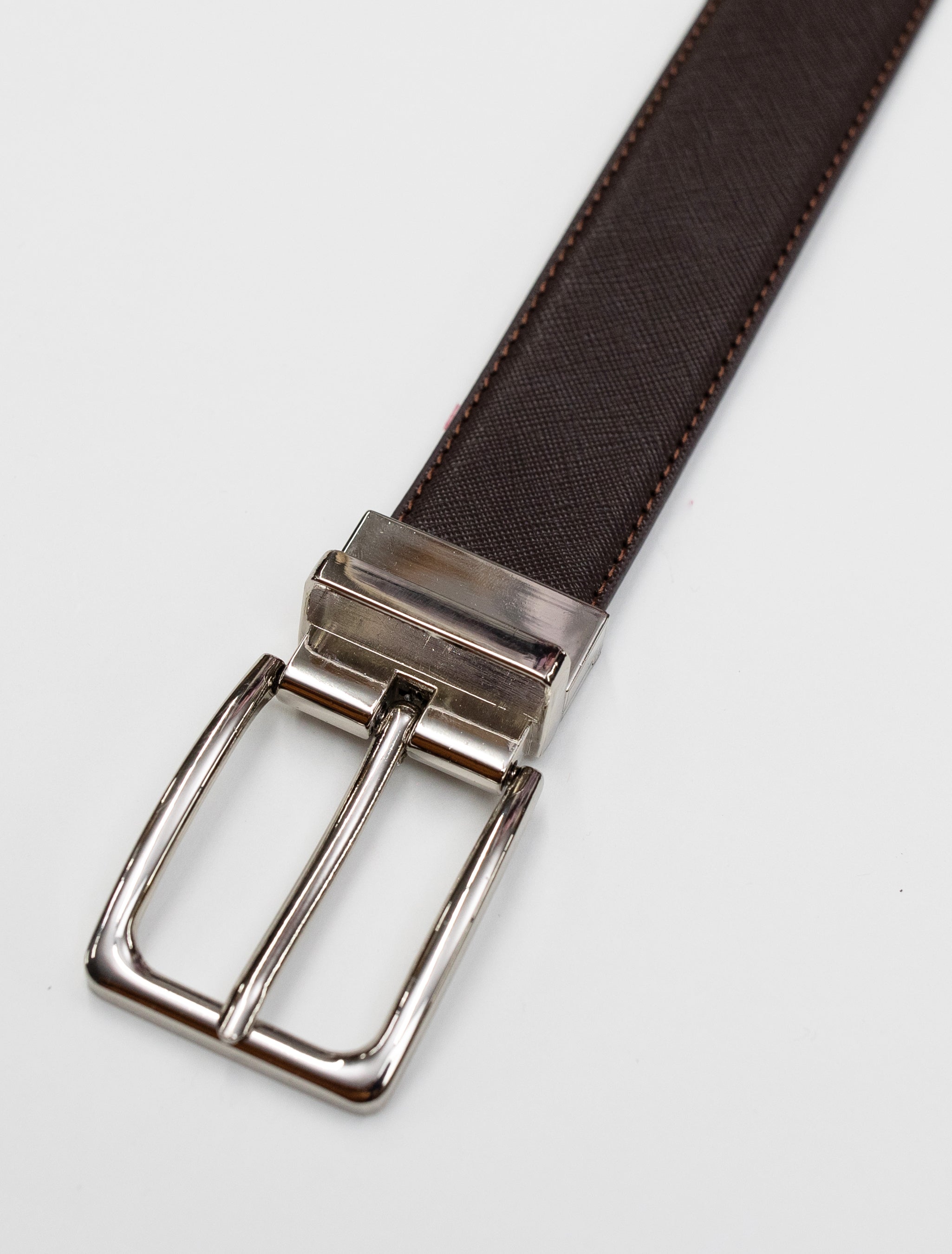 Men's Brown Dotted Stitch Edge Leather Reversible Buckle Belt