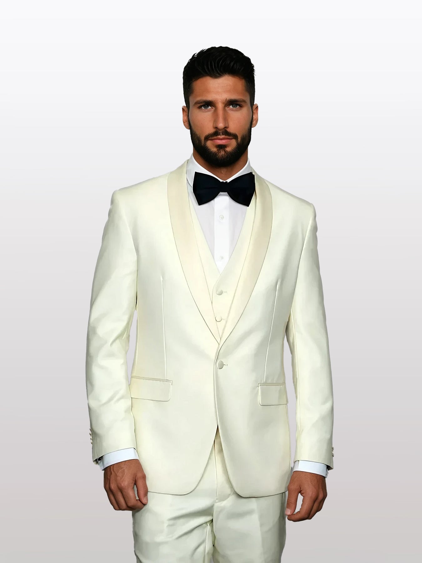 Statement Men's Off-White with White Lapel Vested 100% Wool Tuxedo