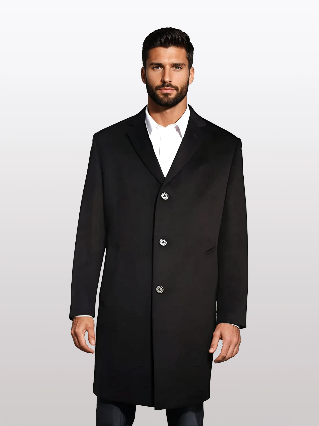 Men's Black Wool Winter Coat - Top Coat for Men - 38" Length