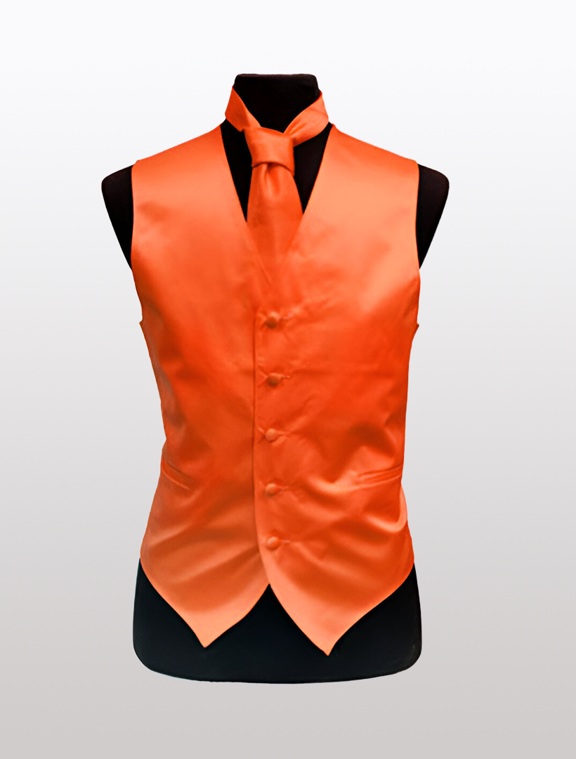 Men's Solid Satin Orange Tuxedo Vest