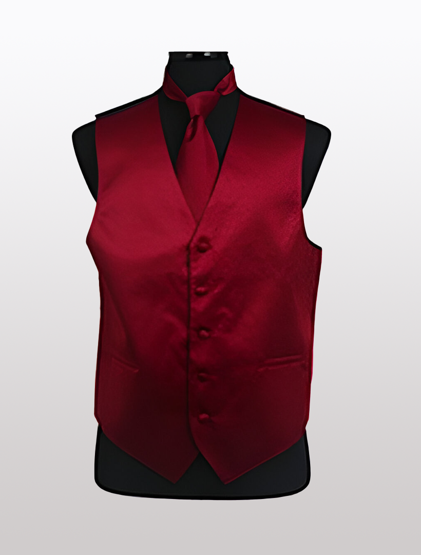 This solid satin vest gives you a modern look that really pops, complete with an adjustable strap in back for just the right fit. Matching tie, bowtie, and pocket square included.